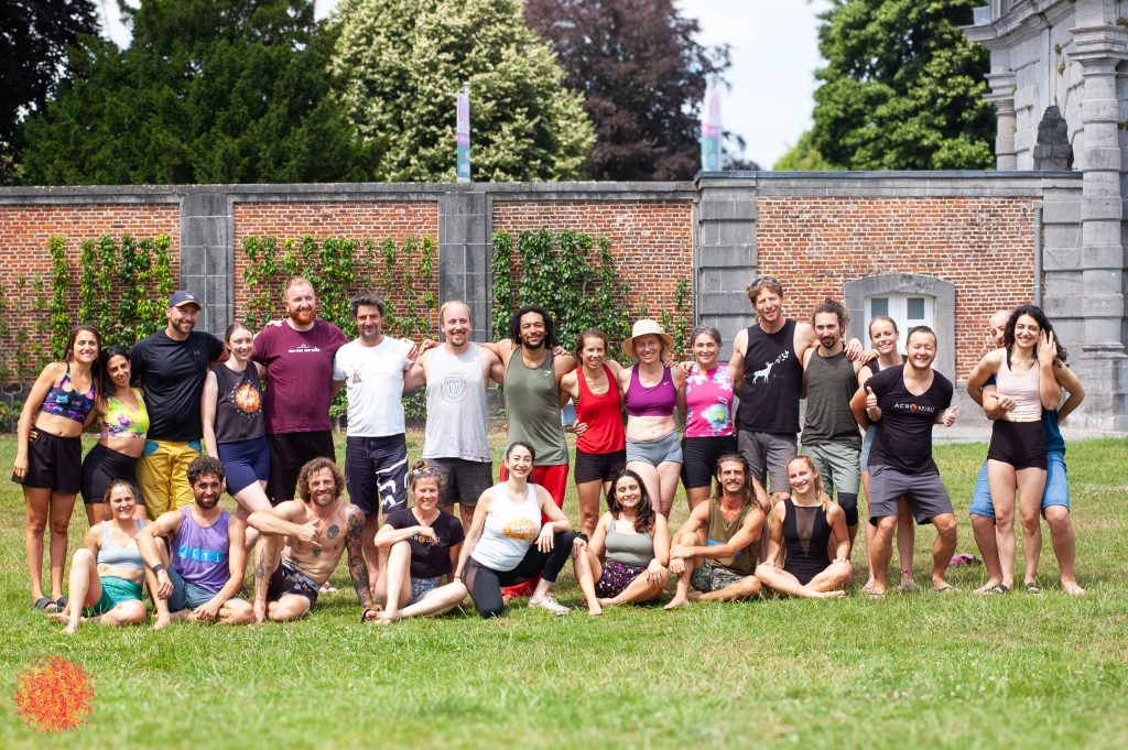 The Acroyoga Summer Festival Belgium is where partner acroyoga meets standing acrobatics, handstands, yoga, Icarian games, whip-pops, aerial disciplines and bodywork, all in a welcoming, inclusive environment surrounded by nature.